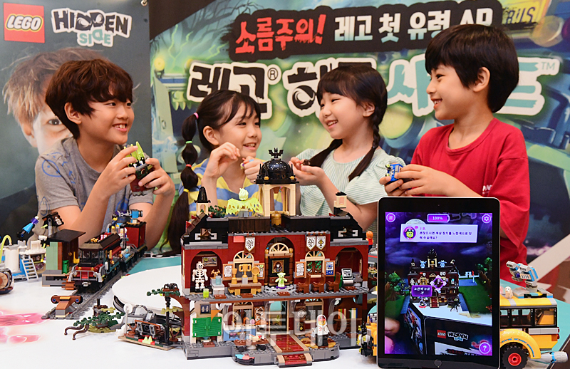레고코리아가 31일 서울 중구 스페이스 라온에서 '레고 히든 사이드' 출시 체험행사를 연 가운데 아이들이 제품을 조립하고 있다. 레고 히든 사이드 시리즈는 유령 테마의 레고 세트에 스마트폰 및 태블릿PC 등을 활용한 증강현실 게임 기술을 접목했다. 조립이 완성된 세트를 히든사이드 앱과 연동해 AR 게임을 할 수 있다. 고이란 기자 photoeran@