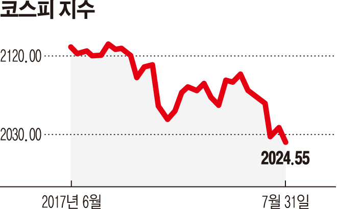 시장에서는 △한일 무역갈등 △미중 무역분쟁 △경기부진 △모건스탠리캐피털인터내셔널(MSCI)의 신흥국지수(EM) 비중 조정 등 국내 증시를 위협하는 요인들이 산적한 상황에서 코스피지수 2000선 사수가 쉽지 않을 것이라는 분석이 많다.
