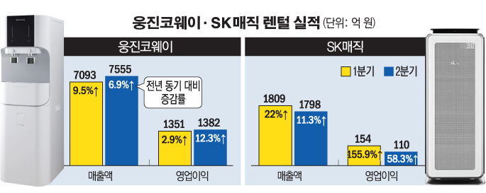 1일 렌털 업계 2위로 꼽히는 SK매직은 전년 대비 수익성이 크게 개선된 2분기 성적표를 받았다. 모회사 SK네트웍스에 따르면 올해 2분기 SK매직의 매출액과 영업이익은 각각 1798억, 110억 원으로 집계됐다. 이는 전년 동기 대비 각각 11.3%, 58.3% 증가한 규모다. 신규 렌털 계정도 크게 늘었다. SK매직은 신규 렌털 개정은 전년 동기 대비 18% 늘어나 누적 렌털 계정이 168만을 달성했다.