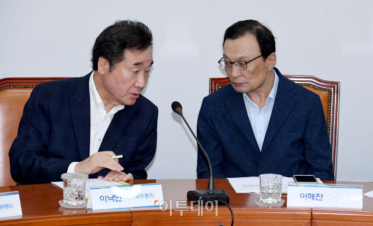 [포토] 의견 나누는 이해찬 대표-이낙연 총리