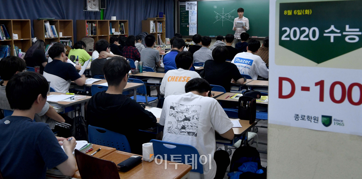 2020학년도 대학수학능력시험을 100일 앞둔 6일 서울 양천구 오목로 목동종로학원에서 학생들이 수험준비에 매진하고 있다.