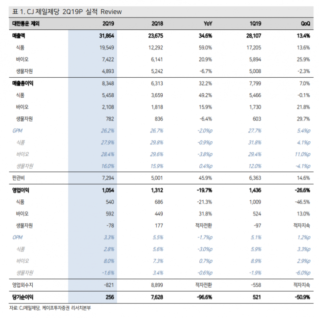 김 연구원은 “특히 식품 부문에서 경고등이 켜졌다”라며 “부진한 내수 경기와 경쟁 심화로 진천 공장의 가동률 상승 폭이 둔화했고, 하반기 계획됐던 2차 투자 일정까지 차질이 생긴 점이 아쉽다”고 말했다.