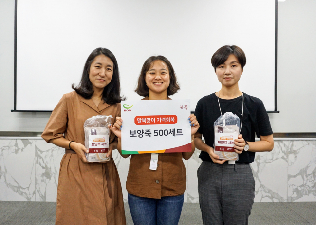 보양죽 세트는 본아이에프 사내 임직원 봉사활동을 통해 제작됐으며, 푹 고아낸 부드러운 닭고기와 국산 인삼을 담아 기력 회복에 효과적인 ‘보양삼계죽’ 2개, 대표 보양 식재료로 꼽히는 전복과 버섯의 깊은 풍미를 즐길 수 있는 ‘전복버섯죽’ 2개, 영양 가득 쇠고기에 사골 육수로 구수한 맛을 더한 ‘쇠고기죽’ 1개 등 5개 제품으로 구성됐다.