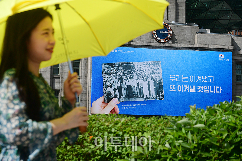 광복절을 나흘 앞둔 11일 서울 중구 서울도서관 외벽 꿈새김판에 '우리는 이겨냈고 또 이겨낼 것입니다'라는 새 문안이 적혀 있다. 서울시는 한·일간 경제·외교적 분쟁 등 광복 이후에도 남아있는 갈등을 시민들과 지혜롭게 극복하자는 염원을 담아 이번 꿈새김판을 기획했다고 밝혔다. 고이란 기자 photoeran@