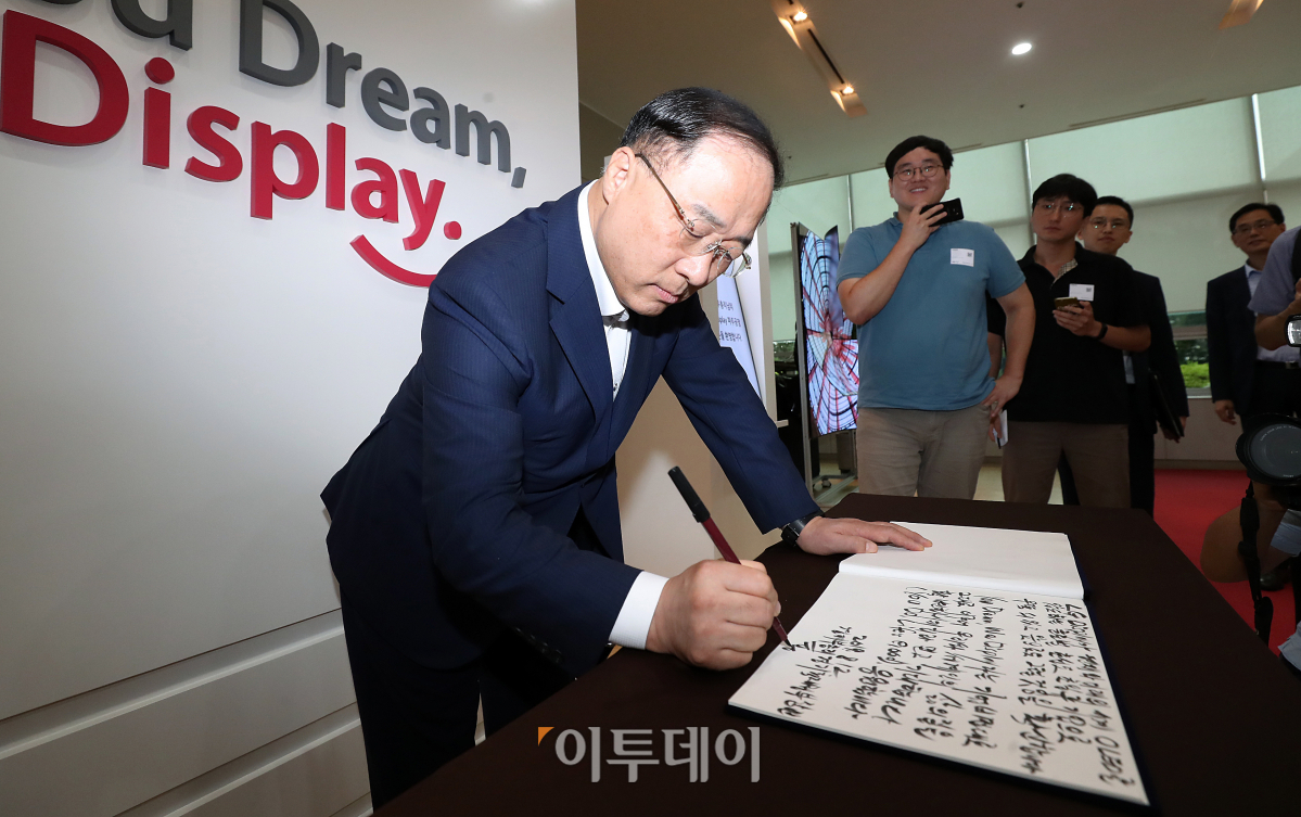 [포토] LG디스플레이 찾아 방명록 작성하는 홍남기 부총리