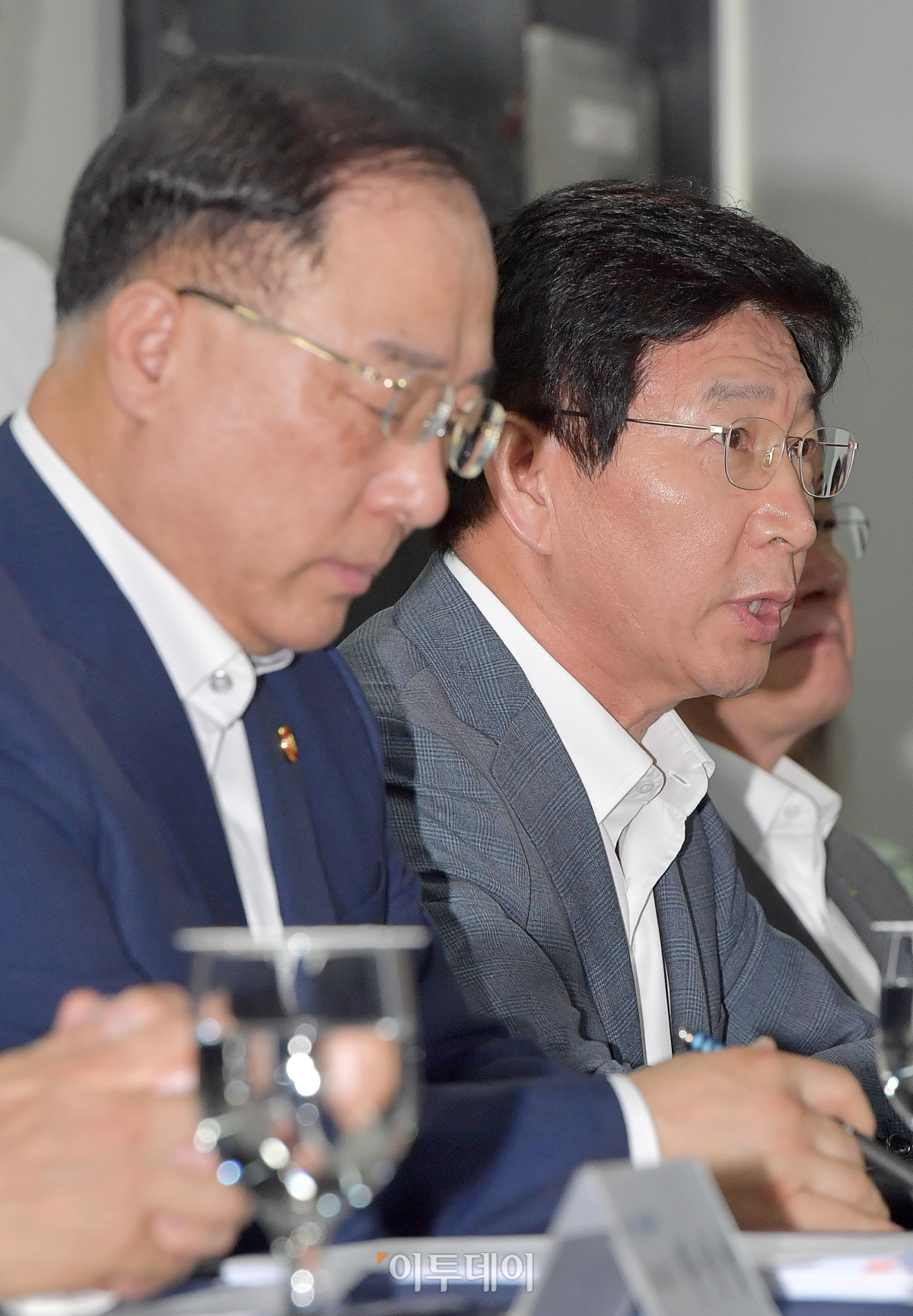 한국디스플레이산업협회장인 이동훈 삼성디스플레이 사장이 12일 오후 경기 파주시 파주출판단지 아시아출판문화정보센터에서 열린 홍남기 경제부총리의 디스플레이 현장 방문 및 기업 간담회에서 모두발언을 하고 있다.