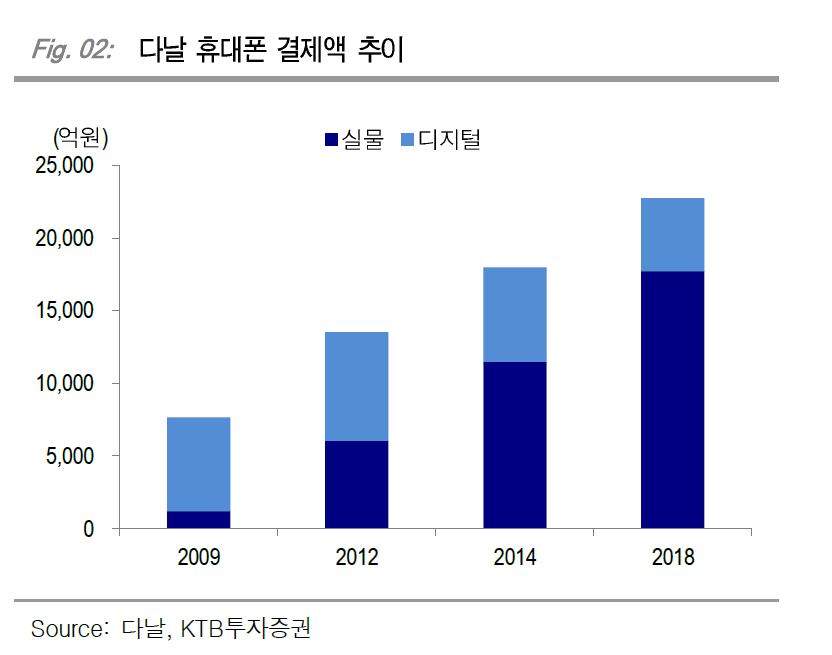 실적 성장 요인이 장기적으로 이어질 것이라는 점이 긍정적이라고 짚었다. 6월 27일부터 온라인 게임 결제한도가 폐지돼 디지털 휴대폰 결제 시장이 확대할 것으로 전망된다는 것이다. 김 연구원은 “3분기부터 삼성페이 휴대폰 결제 서비스도 시작하며 오프라인 결제액도 증가할 것으로 예상된다”고 분석했다.