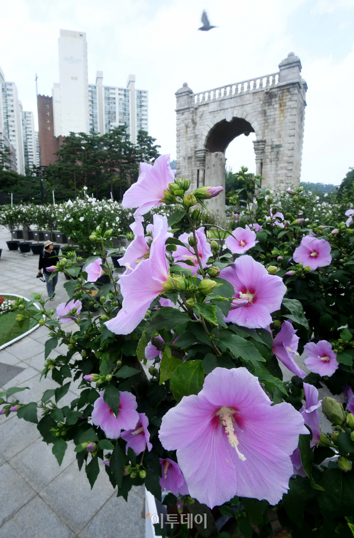 광복절을 이틀 앞둔 13일 서울 서대문구 통일로 서대문 독립공원 일대에서 열린 ‘서울무궁화축제’에서 한 시민이 꽃길을 걷고 있다. 오는 15일까지 진행되는 서울무궁화축제는 서울시가 광복절을 맞아 ‘역사의 외침, 꽃의 함성’을 주제로 나라꽃 무궁화와 대한민국 임시정부 100주년을 기념하기 위해 마련했다.