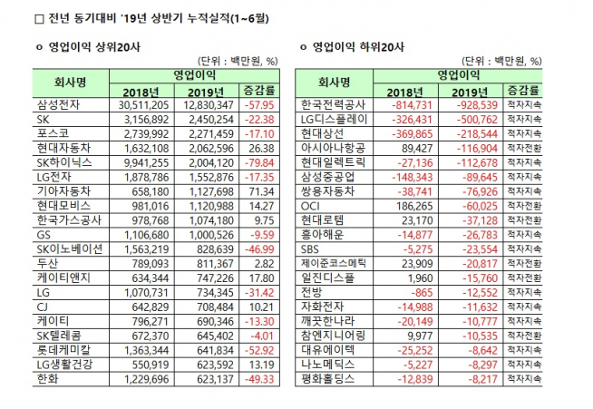 한편 영업이익이 가장 낮았던 상장사는 한국전력으로 9285억 원의 영업적자를 기록했다.