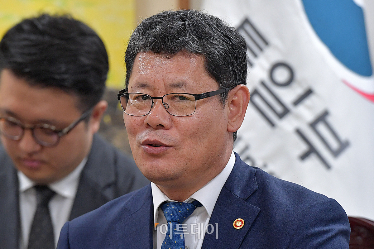 김연철 통일부 장관이 21일 서울 종로구 세종대로 정부서울청사에서 스티븐 비건 미 국무부 대북정책특별대표를 만나 면담하고 있다.