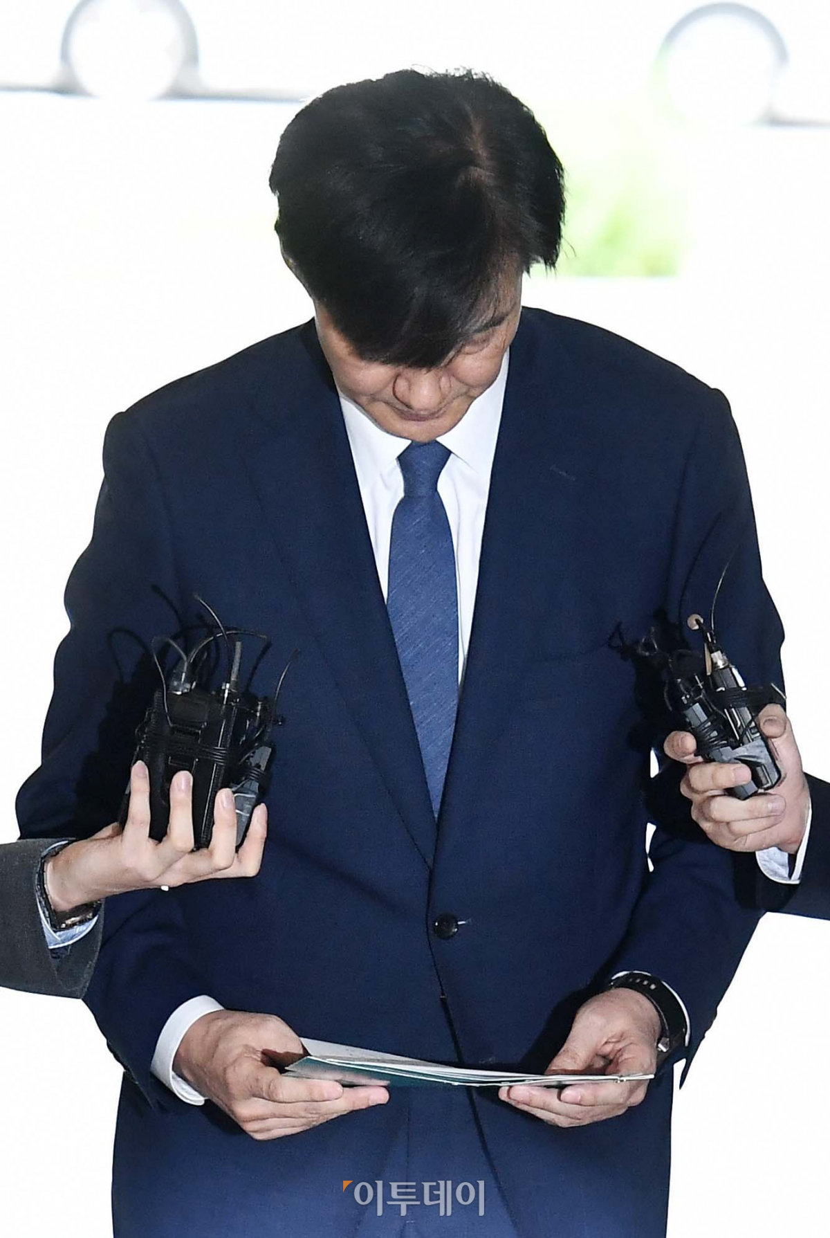 조국 법무부 장관 후보자가 25일 인사청문회 준비 사무실이 마련된 서울 종로구 적선현대빌딩으로 출근하고 있다.