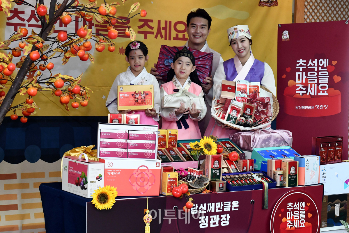 KGC인삼공사 정관장이 26일 서울 중구 퇴계로 한국의집에서 ‘추석엔 정관장으로 마음을 주세요, 당신께만큼은 정관장’ 캠페인을 알리고 있다. 정관장은 민족 최대의 명절 추석을 맞아 내달 16일까지 전국 매장에서 다양한 특별 프로모션을 진행한다.