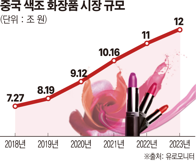 중국 색조 시장은 지난해 7조 2729억 원에서 올해 8조 1948억 원으로 12% 성장한 뒤 2022년에는 11조 원대, 2023년대는 12조 원대로 커질 것으로 보인다.