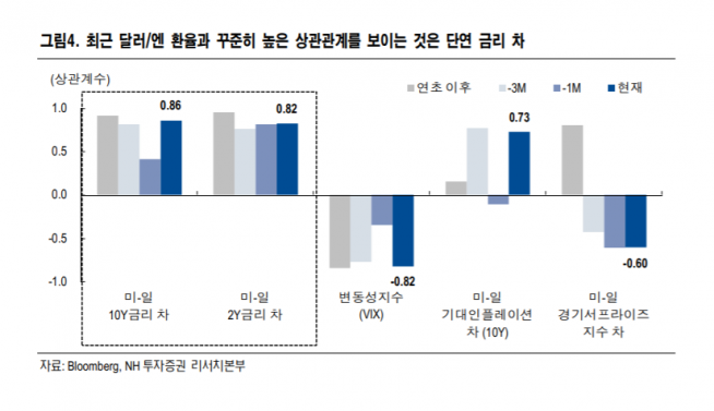 권아민 NH투자증권 연구원은 “지난해에는 글로벌 안전자산 선호현상이 엔화의 강세를 견인했다고 볼 수 있다”며 “그러나 올해는 안전자산 선호심리가 엔화의 강세에 기여를 하고 있지만, 이보다는 미-일간 금리 차이의 영향이 더 크다”고 분석했다.