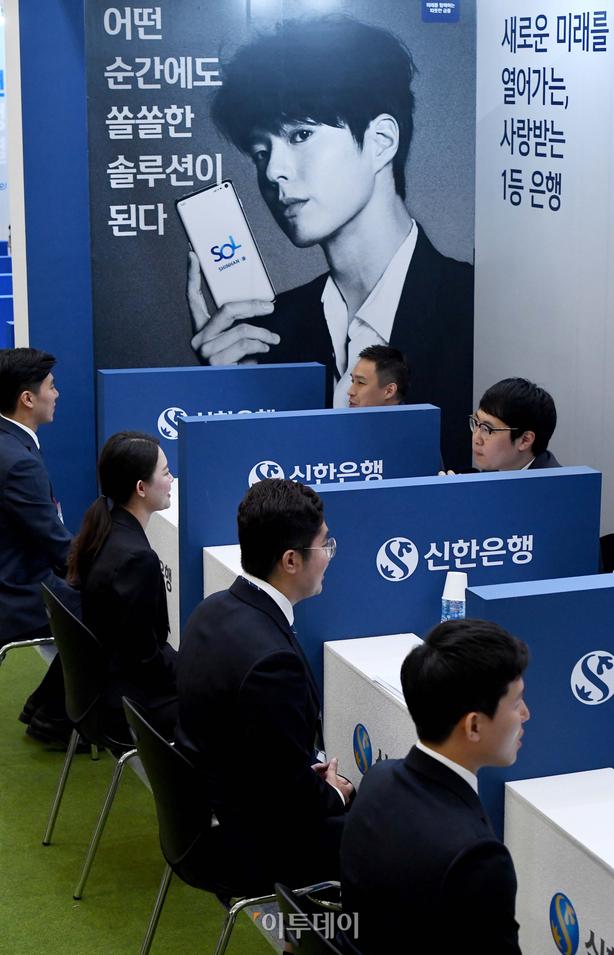 27일 서울 중구 을지로 동대문디자인플라자(DDP)에서 열린 ‘금융권 공동채용박람회’에서 구직자들이 현장면접을 보고 있다. 은행연합회 등 6개 금융협회 주최로 28일까지 열리는 이번 채용박람회엔 60개 금융회사가 참여해 현장면접과 채용상담 등을 진행한다.