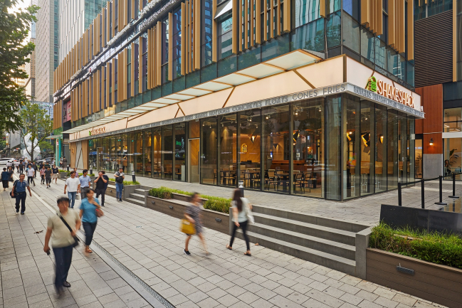 ‘쉐이크쉑 종각점’은 비즈니스, 문화, 상업 등 다양한 오피스 상권의 중심지인 ‘그랑 서울’ 1층에 300㎡, 95석 규모로 자리 잡았으며, 지역의 한국적인 특성을 살려 전통적인 패턴의 조각보를 모티브로 매장을 연출했다. 또한 팝아트, 일러스트 작가 ‘VERIL’과 협업해 종로의 과거와 현재, 미래의 순간을 재치 있게 담은 ‘씨티팝(City Pop)’ 작품을 통해 ‘쉐이크쉑 종각점’의 활기찬 분위기를 표현했다.