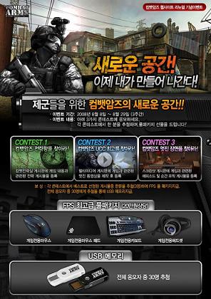 넥슨은 각 게시판별로 베스트로 선정된 게시물들 중 추첨을 통해 총 3명에게 20만원 상당의 최고급 FPS게임용 PC 주변기기 풀 패키지(게임 전용 헤드셋, 키보드, 마우스, 패드)를 증정하며, 전체 응모자 중 30명에게는 USB메모리스틱(2GB)을 지급한다.