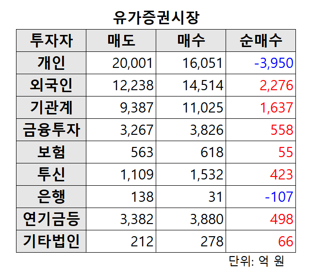 [오늘의 매매동향] 코스피