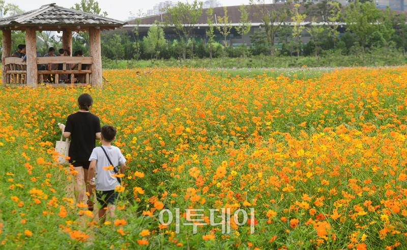 서울의 낮 기온이 29도에 머물며 선선한 가을날씨를 보인 1일 인천 계양 꽃마루에서 시민들이 나들이를 즐기고 있다. 고이란 기자 photoeran@