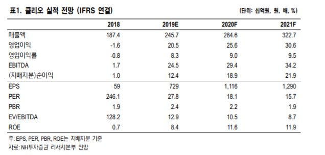 NH투자증권이 4일 클리오에 대해 신제품 출시, 온라인 확대 등으로 분기별 실적이 개선될 것으로 예상하면서 목표주가 3만 원, 투자의견 매수를 유지했다.