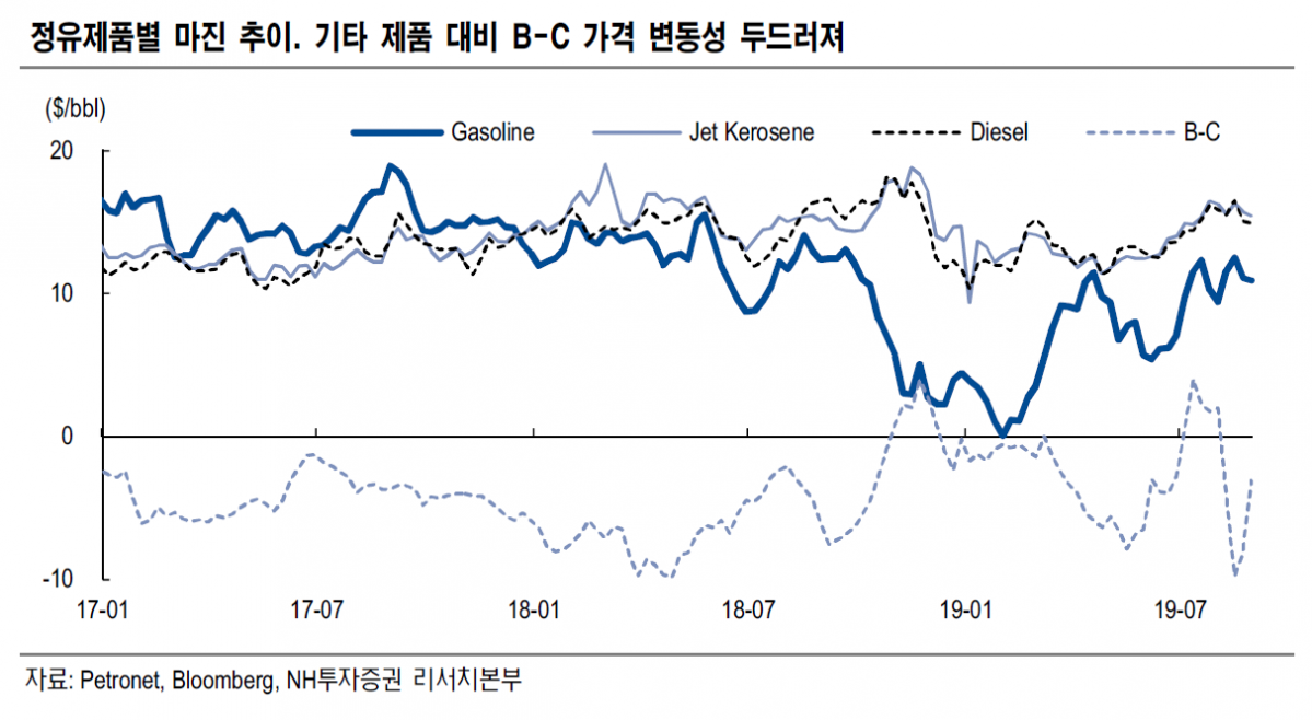 NH투자는 하반기 벙커씨(B-C) 가격 변동성 확대에 따라 정유업이 IMO2020의 영향권에 진입한 것으로 판단했다.