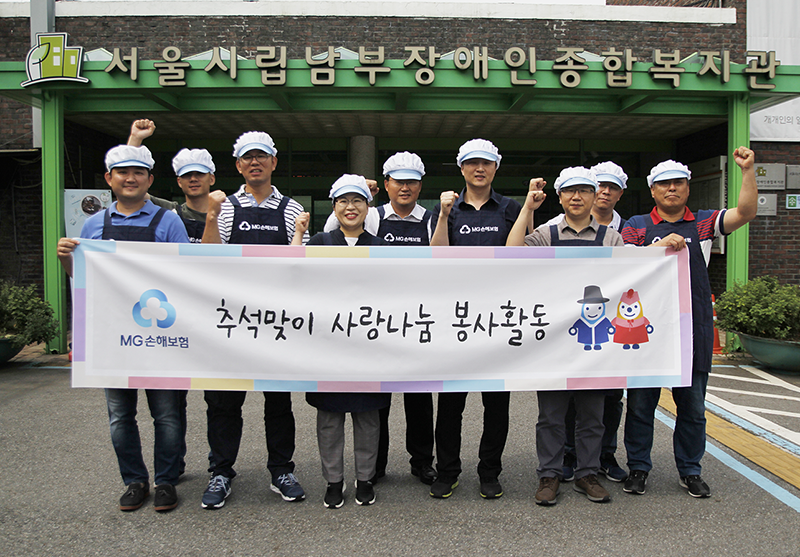 MG손해보험은 9일 추석 명절을 앞두고 서울시 동작구에 위치한 서울시립남부장애인종합복지관을 찾아 ‘추석맞이 사랑나눔 봉사활동’을 진행했다고 밝혔다.