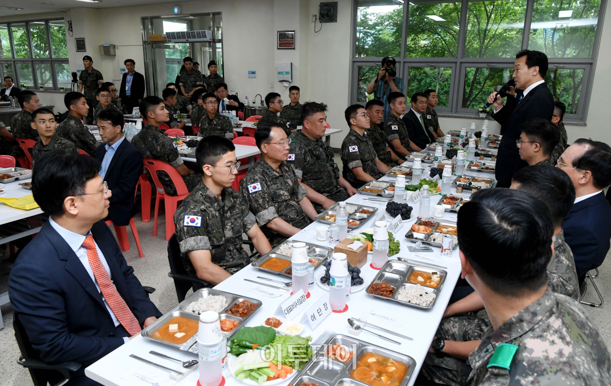 손학규 바른미래당 대표가 10일 경기 김포시 505방공대대를 찾아 인사말을 하고 있다.