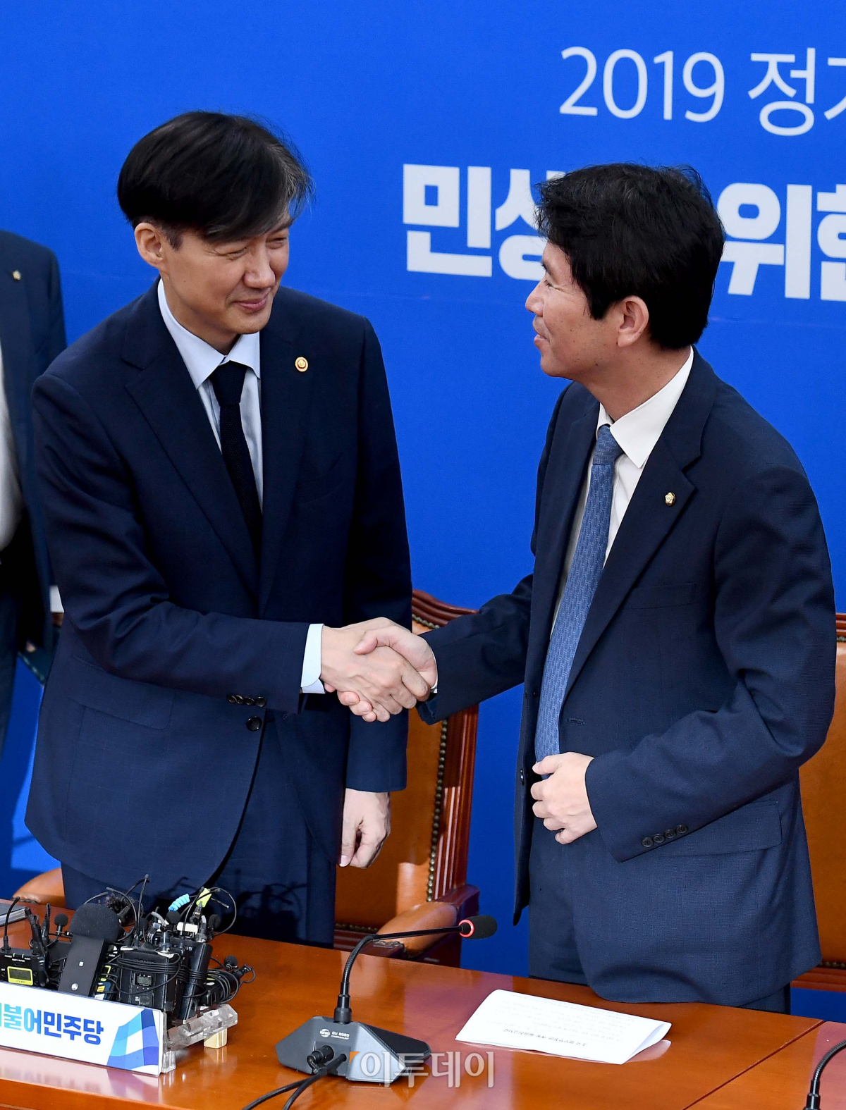 [포토] 조국 법무부 장관, 이인영 민주당 원내대표 예방