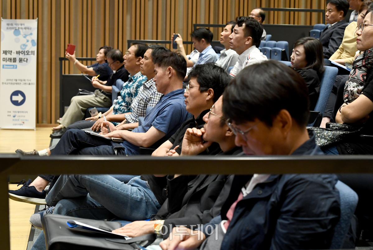 19일 서울 여의도 한국교직원공제회관에서 열린 제9회 프리미엄 투자 세미나 ‘제약·바이오의 미래를 묻다 시즌 3’에서 참석자들이 연사의 강연을 경청하고 있다. 이투데이미디어가 주최한 이날 행사에선 리서치센터 제약·바이오 담당 연구원들이 직접 코오롱티슈진, 에이치엘비, 신라젠 등 주요 제약 바이오 기업에 대한 평가 진단과 함께 제약·바이오 업종 대표 종목 전망 및 유망 종목 발굴 등을 주제로 강연했다.