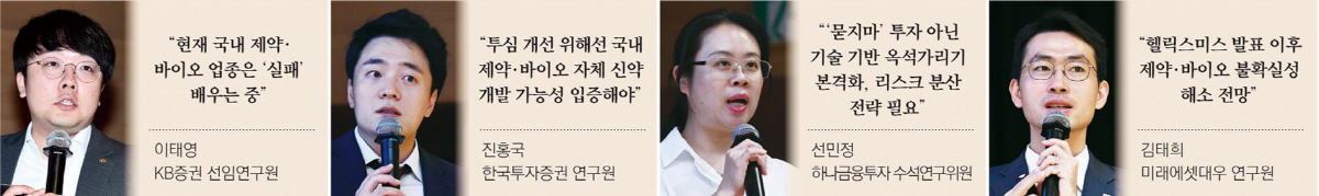 첫 번째 연사로 나선 이태영 KB증권 연구원은 제약·바이오 업종의 투자 전략으로 리스크 관리 관점에서 접근해야 한다고 강조했다. 이 연구원은 “최근 (임상) 실패 소식이 나오고 있는 것은 오히려 건전한 시점이라는 것을 반증하는 것”이라면서 “해당 산업이 꼭 필요한 시기를 겪고 있다”고 말했다. 이 때문에 현재 시점에서는 제약·바이오 섹터에 투자함에 있어서 리스크 관리 차원에서 실수를 반복하지 않는 기업에 주목해야 한다고 조언했다. 그는 “파이프라인 임상 실패한 것일 뿐 없어져야 할 회사가 아니다”라면서 “(임상에서) 실패한 기업이 실패를 통해서 잘 배우고 있는지를 확인하는 것이 중요하다”고 강조했다.