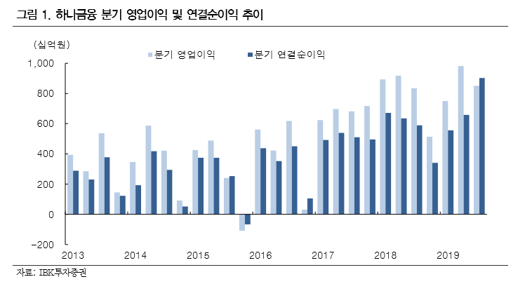 IBK투자증권은 25일 하나금융지주에 대해 “건물 매각으로 연결 순이익 증가가 전망되지만, 영업이익 하향조정을 고려했다”며 목표주가를 기존 5만8000원에서 5만6000원으로 하향했다. 투자의견은 ‘매수’를 유지했다.