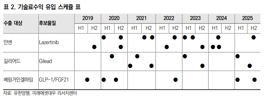 김태희 연구원은 “지난해 말 얀센 대상으로 1조4000억 원 규모의 기술이전 계약을 체결했으며, 올해 NASH 후보물질을 길리어드, 베링커인겔하임에 각각 1조 원에 기술이전했다”며 “8개월 만에 다국적 제약사 대상으로 3건의 대규모 딜을 체결했지만, 주가는 거의 오르지 못한 상태”라고 분석했다.