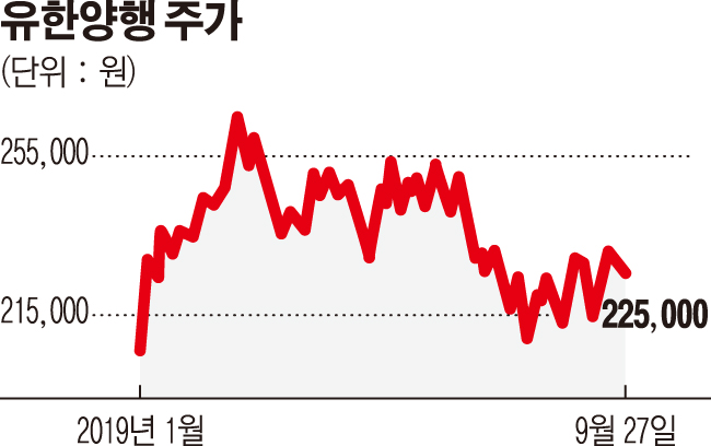그럼에도 실적 부진 우려로 주가는 탄력을 받지 못하는 실정이다. 유한양행 주가는 2월 52주 신고가를 경신하는 등 상반기 양호한 흐름을 이어갔지만 7월 들어 제약바이오 리스크와 맞물려 급격하게 떨어졌다. 현재는 8월 신저가를 기점으로 서서히 반등하는 수준이다.