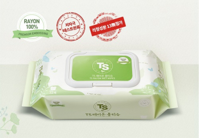 TS트릴리온(대표 장기영)이 생분해성 100% 레이온 원단을 사용해 민감하고 여린 아기 피부에도 사용이 가능한 ‘TS레이온물티슈’를 26일 출시했다.