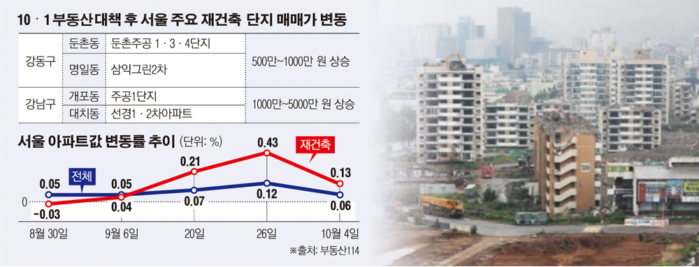 부동산114 관계자는 “민간택지 분양가 상한제 시행에 유예기간을 두면서 서울 재건축시장은 초기단계 재건축 단지와 상한제 규제를 피해갈 수 있게 된 관리처분 단계의 사업지 간 희비가 엇갈릴 것으로 보인다”고 분석했다.