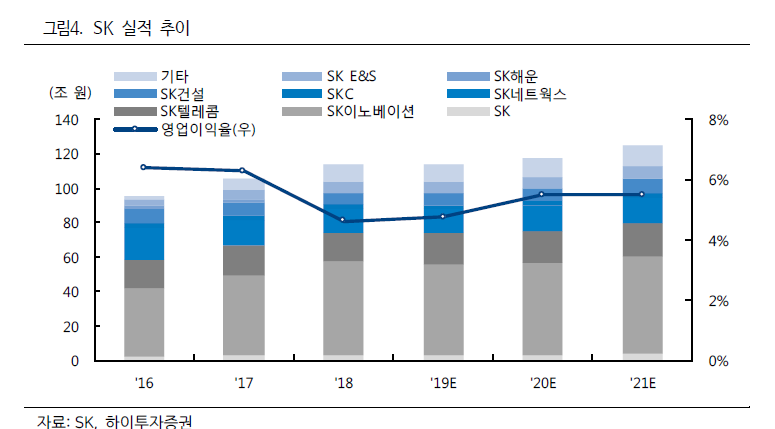 이 연구원은 SK가 M&A 등 자금을 투입해 신사업을 육성하고, 이를 고수익 사업으로 확대하는 투자형 전문 지주회사로서 행보를 가속화하고 있다고 봤다. 그는 “우선 글로벌 종합 제약사를 목표로 SK 바이오팜을 통해 신약을 개발하고 있고, SK 바이오텍은 의약품 생산에 집중하고 있다”며 “SK 바이오팜이 독자적으로 개발한 뇌전증 치료제인 신약 세노바메이트(Cenobamate)는 11 월 FDA 판매 허가를 받을 경우 2020년에는 미국시장에서 판매가 가능할 전망”이라고 설명했다.