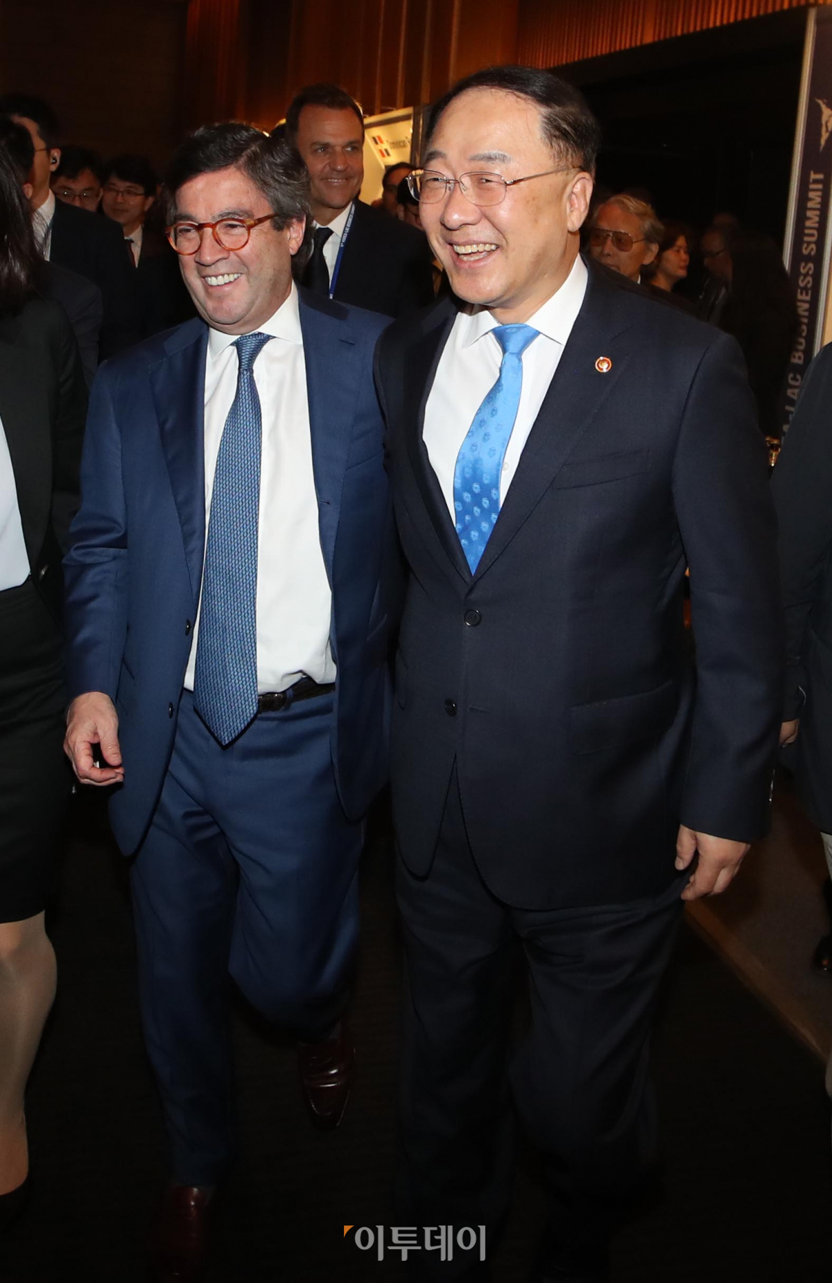 홍남기 경제부총리 겸 기획재정부 장관과 알베르토 모레노 미주개발은행(IDB) 총재가 7일 서울 중구 신라호텔에서 열린 ‘제5차 한-중남미 비즈니스 서밋’에 참석하고 있다.