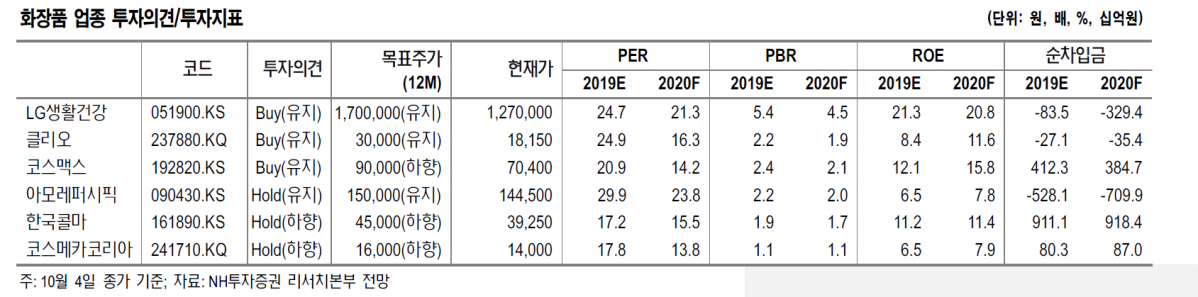 그러면서 그는 “중국 시장 경쟁과 온라인 시장 확대, 프리미엄과 매스 브랜드의 양분화 현상은 더욱 심화되고 있기 때문에 소비자 트렌드와 산업의 구조적 변화에 맞추어 체질을 개선했거나 견조한 브랜드력을 갖춘 업체들에 더욱 집중할 때”라며 “단기적 실적뿐 아니라, 중장기적 방향성이 이에 부합한다고 판단되는 LG생활건강과 클리오를 업종 내 Top Picks로 추천한다”고 말했다.
