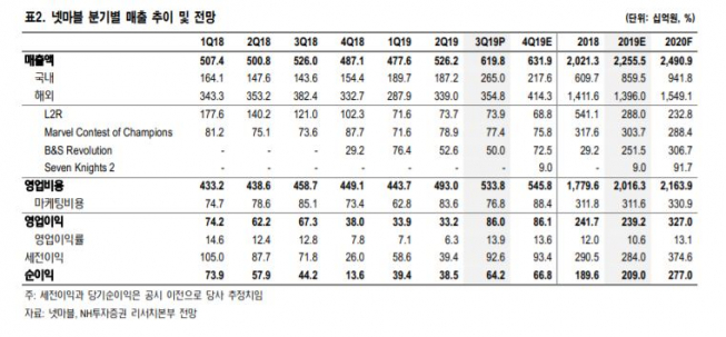 NH투자증권은 8일 넷마블에 대해 상반기 실적은 부진했지만, 잠정실적을 발표한 3분기를 기점으로 회복세에 진입할 전망이라며 목표주가 11만 원, 투자의견 매수를 유지했다.