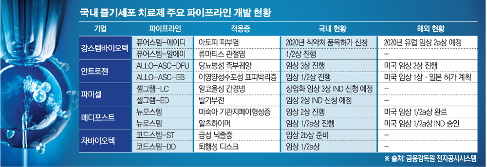 9일 업계에 따르면 줄기세포치료제 임상을 진행 중인 국내 기업은 10곳 안팎이다. 희귀하거나 치료제가 없어 미충족 수요가 높은 질환을 중심으로 연구·개발(R&D)이 이뤄지고 있어 상용화에 대한 기대가 높다.