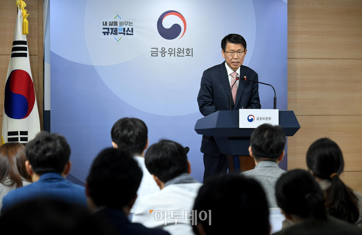 은성수 금융위원장이 취임 한달을 맞아 10일 서울 종로구 세종대로 정부서울청사에서 가진 기자간담회에서 취재진의 질문에 답하고 있다.