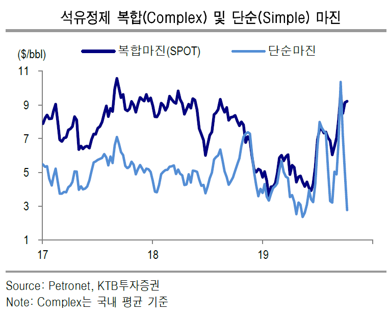 이희철 연구원은 “최근 역내 정유 시장은 수급이 타이트한 상황”이라며 “사우디 석유시설 피습 이후 정유사 가동중단 영향 등으로 석유 제품 공급이 줄어든 가운데 9~11월 사이 인도, 중동, 동남아 등에서 가을철 정기보수가 집중되고 있기 때문”이라고 말했다.