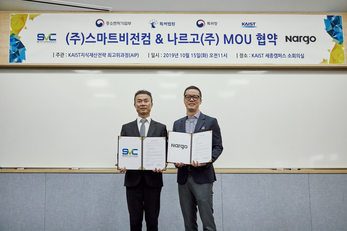 나르고 전용신 대표와 스마트비전컴 조정필 대표는 국내 최초로 중소벤처기업부, 특허법원, 특허청 및 KAIST가 협력해서 개설한 ‘KAIST 지식재산전략 최고위(AIP, Advanced Intellectual Property Strategy Program)’과정 제4기와 제7기에서 만난 KAIST 동문이다.