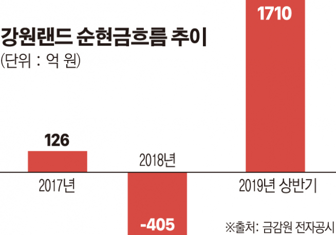 강원랜드의 현금흐름이 올 들어 플러스로 전환했다. 반기 기준 1710억 원 규모로 역대 최고치다.