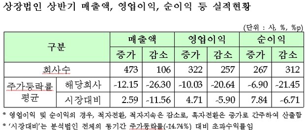 올 상반기 실적호전법인의 주가가 하락했으나 시장대비 초과수익을 기록한 것으로 나타났다.