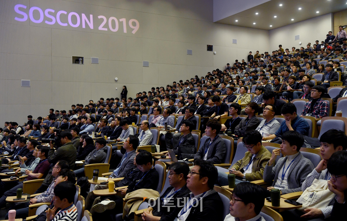 16일 서울 서초구 삼성전자 서울R&D캠퍼스에서 열린 ‘삼성 오픈소스 콘퍼런스(SOSCON) 2019’에서 참석자들이 연사의 발표를 듣고 있다. 2014년부터 시작해 6회째인 SOSCON은 소프트웨어 개발자 2000여명이 한자리에 모여 오픈소스 기반의 5G, 로봇, 인공지능(AI), 사물인터넷(IoT), 빅데이터 등 최신기술에 대한 정보와 인사이트를 공유하는 자리다.