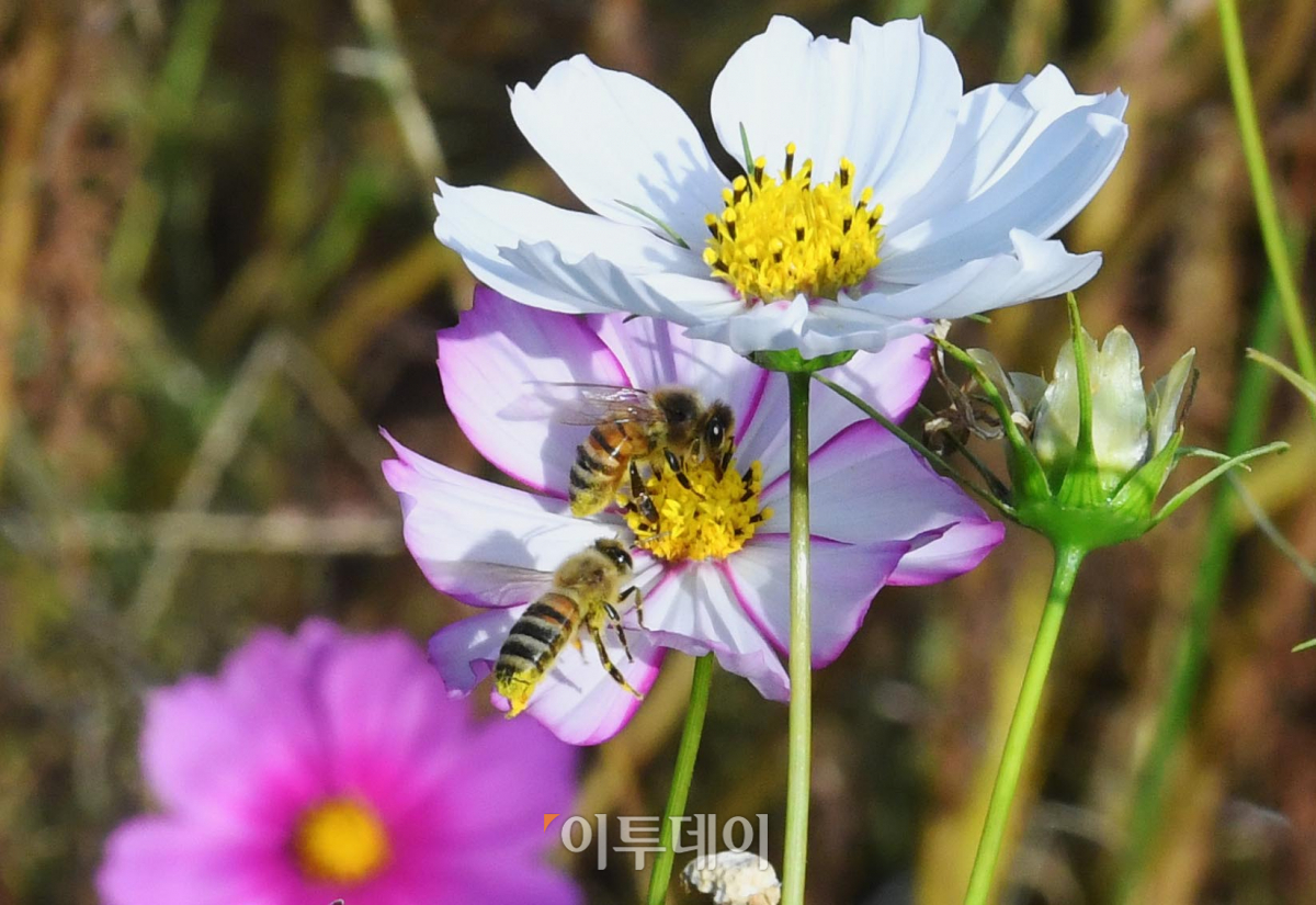 완연한 가을 날씨를 보인 18일 서울 강서구 마곡역 인근에 코스모스가 활짝 피어있다.