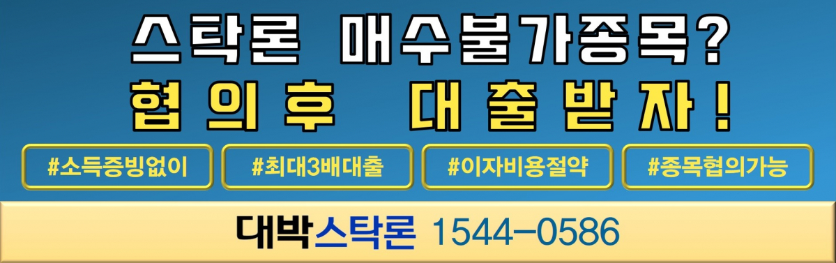또한, DSR, 신용등급, 매수불가종목 등의 문제로 대출이 안되었거나 안될거라 생각했다면 대박스탁론에선 대출이 가능한 방법을 알려드린다.