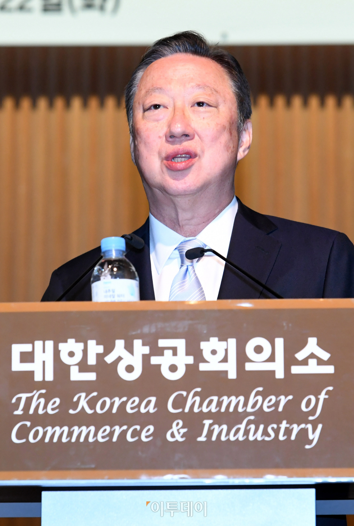 박용만 대한상공회의소 회장이 22일 서울 중구 대한상공회의소에서 열린 조성욱 공정거래위원장 초청 조찬강연회에서 인사말을 하고 있다.