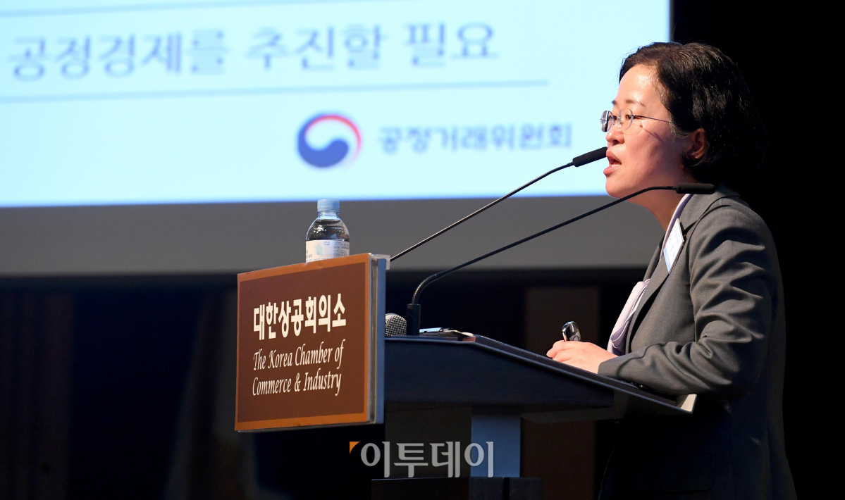 조성욱 공정거래위원장이 22일 서울 중구 대한상공회의소에서 열린 조찬강연회에서 ‘공정한 시장경제 생태계 조성을 위한 공정위 정책방향’을 주제로 강연하고 있다.
